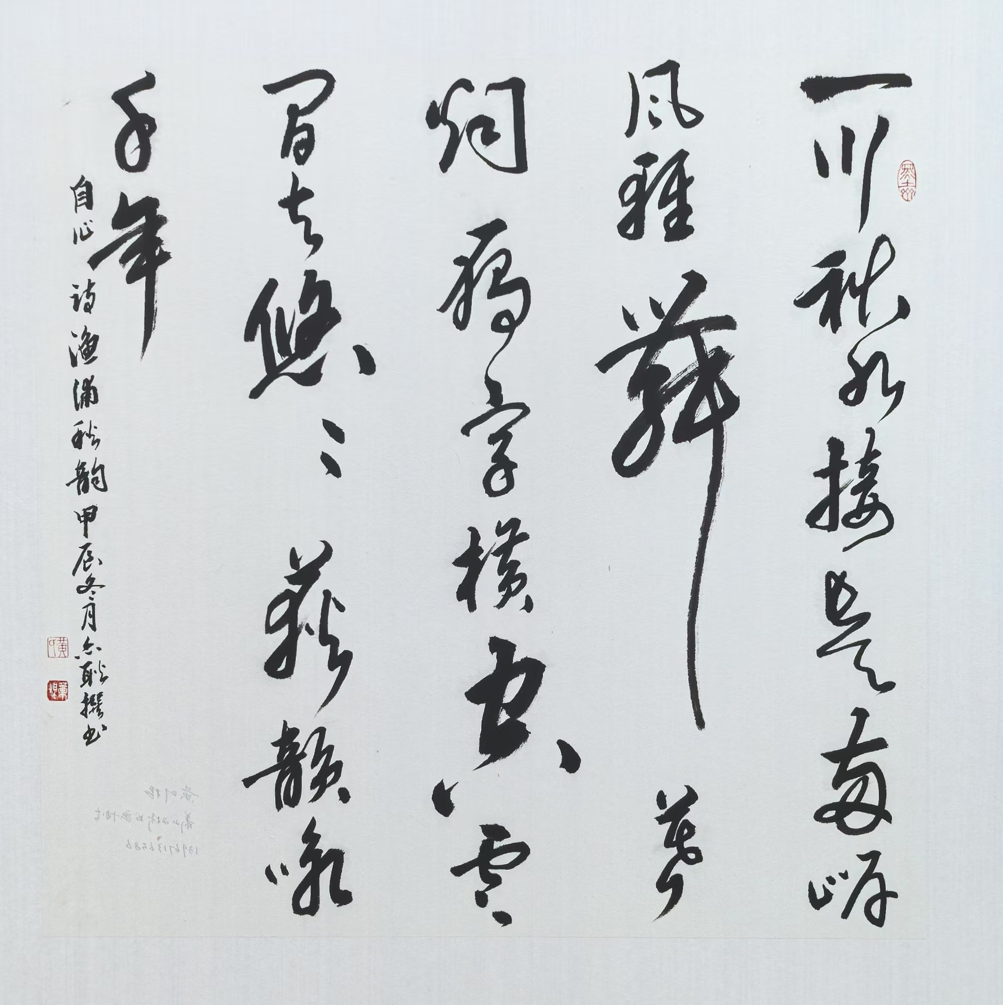 草书条幅自作诗《行吟贵州》,入展二0一九年九月,杭州市委宣传部、杭州市文联、西泠印社等举办的“盛世钱塘 韵味杭州一一庆祝中华人民共和国成立七十周年”诗书画印展。草书条幅自作诗《黔行吟》,入展二0二0年九月,杭州市文化广电旅游局主办的“众志成城,圆梦中华一一纪念抗战胜利七十五周年”优秀作品展。 行书条幅清王雾楼诗《钱塘看潮涌》,二0二0年十月,发表在凤凰网客户端。 行书楹联《强中华 齐小康》,入展二0二0年十一月首届“工行杯”“中国梦 小康路”浙江省书画大赛作品展。 行草书法作品清王雾楼诗《渔浦观日落》,发表在二0二0年十二月二十一日《萧山日报》。草书条幅自作诗《苗疆吟》,入展二0二一年十一月,杭州市文联、杭州市作协主办的“盛世钱塘 幸福杭州”书法作品展。行书作品《浙里抗疫必胜》,二0二二年一月,发表在杭州市文联公众号。 行草《浙里雄风》,入展二0二三年七月,由中国美院、西泠印社、浙江省慈善总会、浙江美术馆、浙江书法家协会、浙江美术家协会和第十九届亚运会组委会宣传部举办的“艺心相融 善耀亚运一一迎亚运慈善书画展”,并被收藏。草书条幅毛主席诗词《忆秦娥. 娄山关》句,入展入选中国长城书画协会第十四届书画作品集,并在北京展出。行草作品(4尺整张自作诗)《乡村初夏》,2024.11.由浙江省诗联主办,滨江区诗联,萧山区诗,富阳区诗联协办的“诗书联巡展”中展出。行草作品《渔浦秋韵》(自作诗)2024.12.在萧山区书协主办的“宁东杯”会员优秀小品展中展出。行草条幅《渔浦观日落》、《渔浦初夏》、《闻王昌龄左迁龙标遥有此寄》、《黄鹤楼吹笛》,行书榜书条幅《蓝之韵》,于二0二0年十月,由浙江省版权局确权认证。