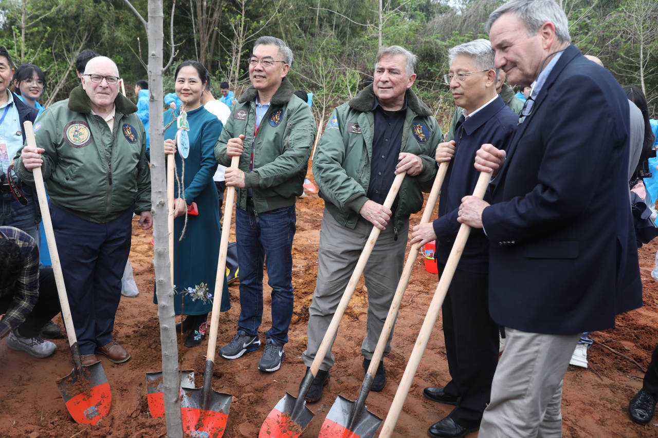 午后的汪村,云销雨霁。在牺牲3号机机械师兼机枪手利兰·法克特曾长眠安息的小山坡上,举行了一场“共植友谊林”活动。 参加此次交流活动的嘉宾和来自衢州各院校的学生们,合力将一颗颗红枫与银杏栽入土中。红枫代表着希望与热情,银杏代表着坚韧与坚韧与沉着,红枫与银杏的并肩,恰如美国人民与中国人民对友谊的期望:热烈而长久。