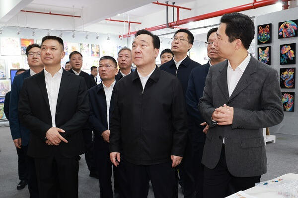 4月27日,省委书记王浩在义乌市调研外贸工作并主持召开座谈会。图为王浩走访蒂彩工艺品,与企业负责人深入交流,详细了解市场变化和应对举措。潮新闻记者 李震宇 摄
