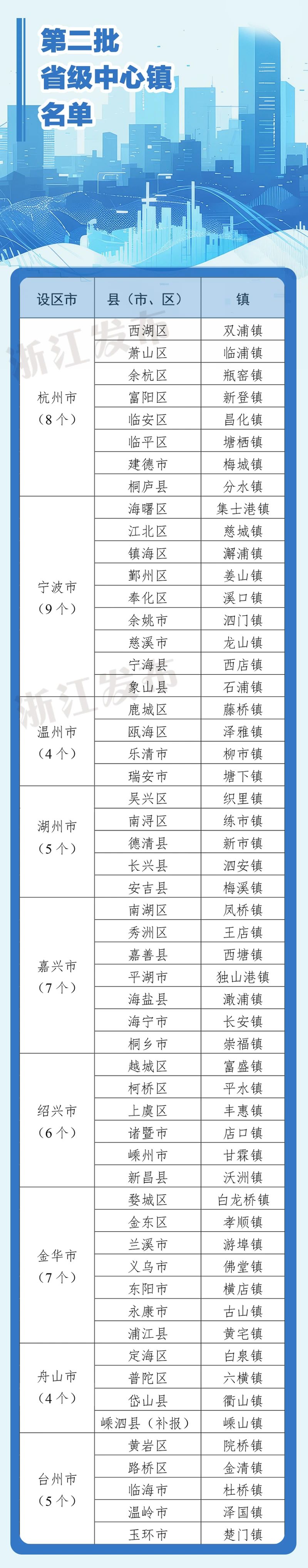 《国企》杂志融媒浙江讯(党建好故事 据浙江省发展改革委)近日,经省委省政府同意,浙江省发展和改革委员会公布第二批省级中心镇名单,55个镇上榜。
