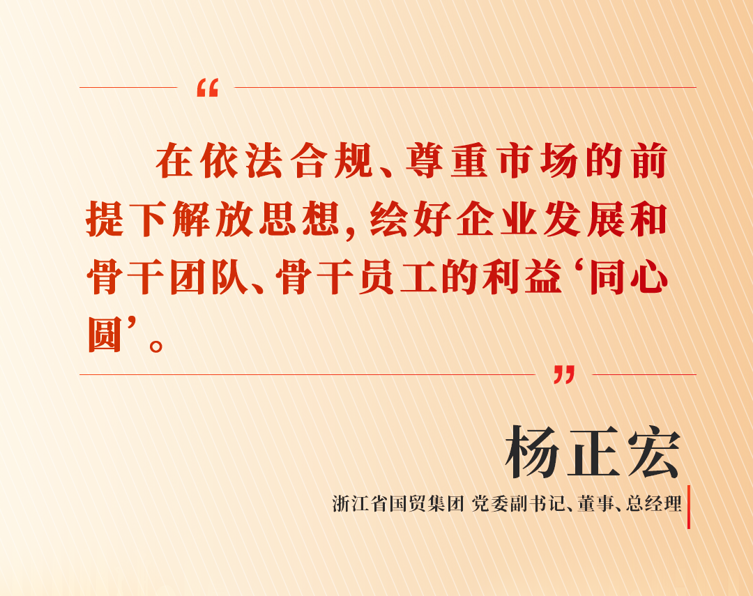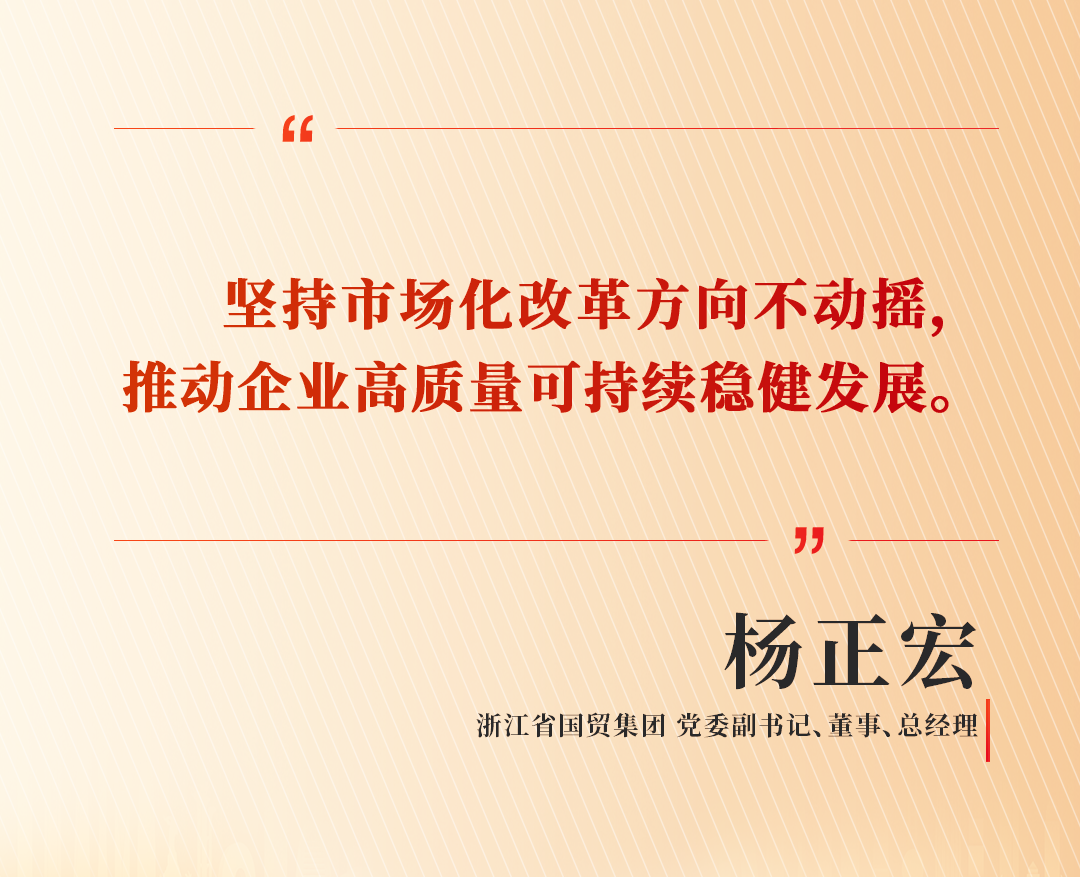 “浙江省国贸集团是一家以外贸起家的省属国企,随着国家外贸体制改革、放开出口商品配额后,外贸进入开放竞争时代。面对市场经济的风浪,浙江省国贸集团深入谋划,作出重大战略调整,积极推动产业转型升级,构建了金融、医药、商贸‘三足鼎立’的产业体系。” 杨正宏表示。