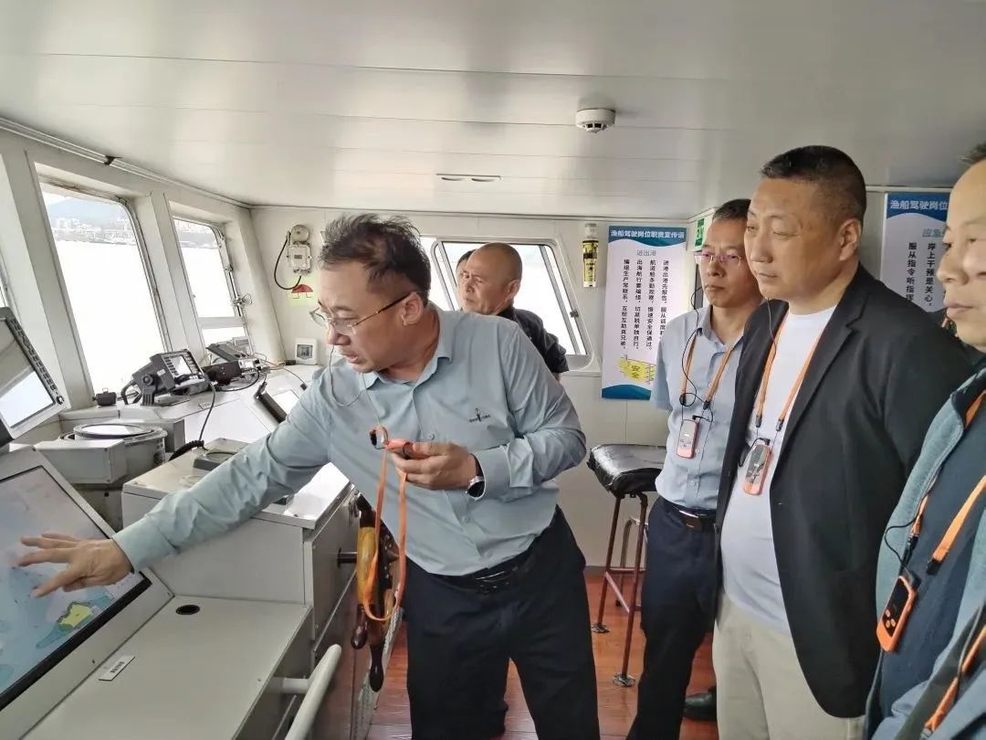 省智能船舶研究院院长(左一)介绍试点情况