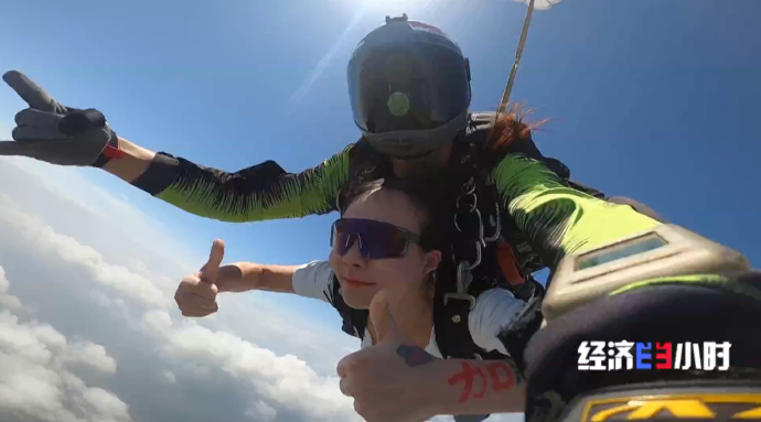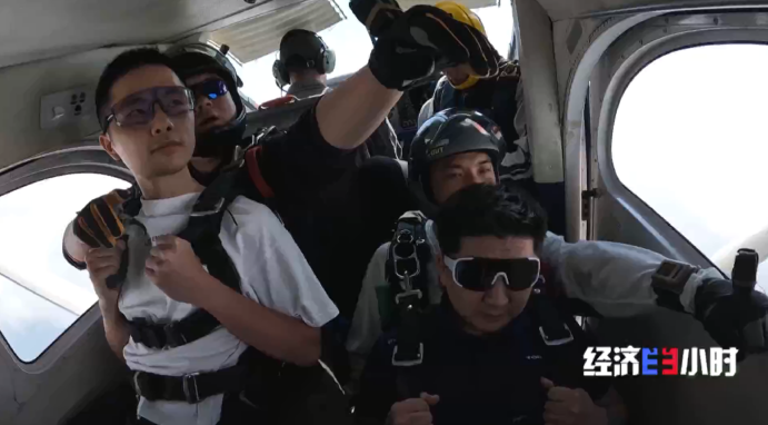 最近几年,国内低空经济发展按下“加速键”,跳伞搭上了“低空+文旅”的快车。起初,王家晨他们公司的跳伞教练只有4名,现在已经有6名,而且有意向做跳伞教练的人也越来越多。赶上高峰期,王家晨一天的收入就超过了七千元,年收入在三四十万元。