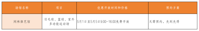余杭区闲林体艺馆向大众惠民开放羽毛球、篮球、室外多功能运动场。