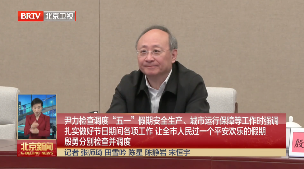 假期首日,北京市委书记尹力通过视频系统调度并赴现场检查节日期间各项工作。市委副书记、市长殷勇分别检查并调度。