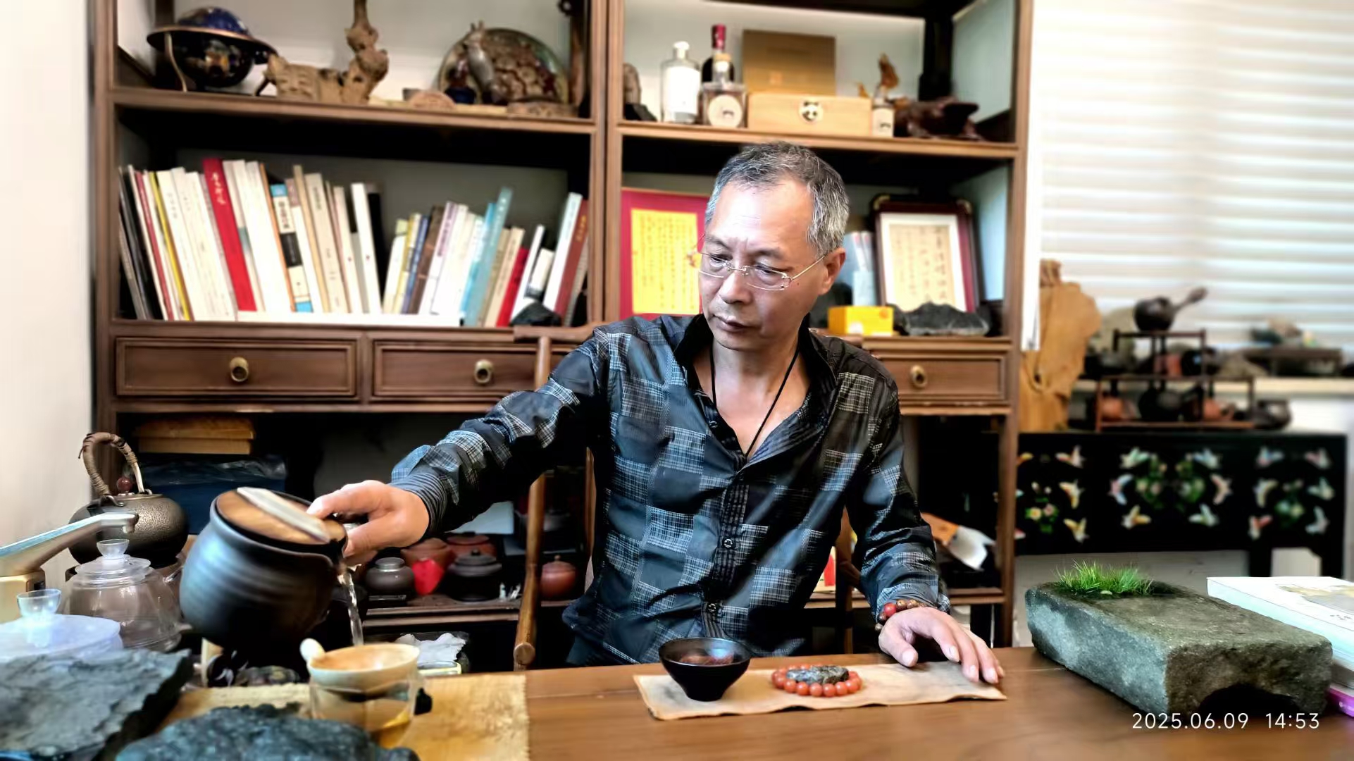 徐凯先生身形清癯却显得格外精干,他是这方小院的守护者,远离城市的喧嚣与浮躁纷扰,一心沉浸在打理“东坡草堂”的悠然时光里。