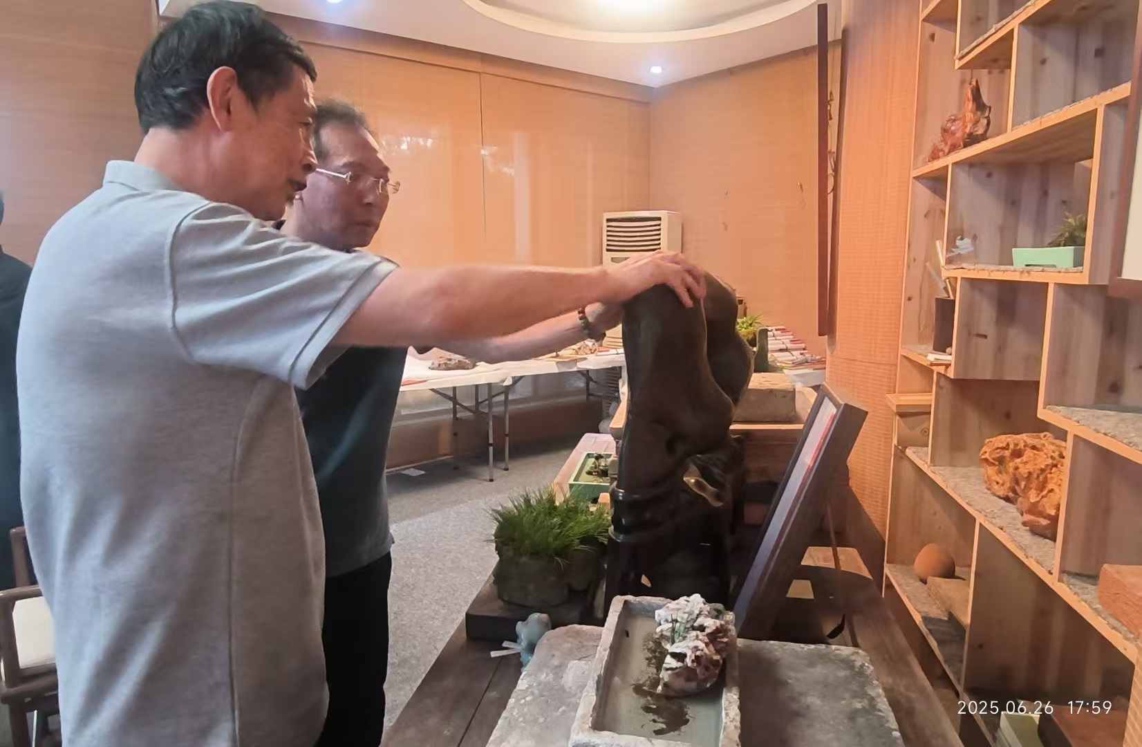 走进草堂,只见墙上挂着绘有菖蒲与东坡的画像,还有各类以菖蒲为主题的小品画,每一幅画都仿佛在诉说着菖蒲与文人墨客之间的故事。这里案几上、地面上,一盆盆菖蒲生长在奇岩怪石之上,宛如一个个灵动的小生命,在这独特的环境中展现着别样的风姿。