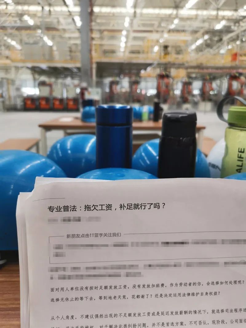 或许是离开匆忙,饮水杯等员工私人物品还整齐摆放在桌子上,旁边放着一叠打印好的微信公众号文章。