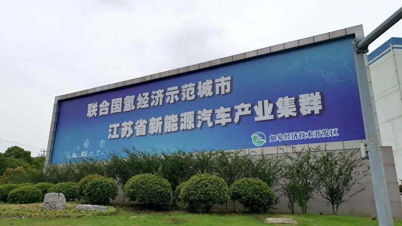 从如皋市花城大道向西拐入301县道,一块写有“联合国氢经济示范城市、江苏省新能源汽车产业集群”的巨大招牌竖立在路边。不远处,赛麟工厂硕大的白色车间映入眼帘,车间外立面上点缀的红色装饰线条尤为醒目。