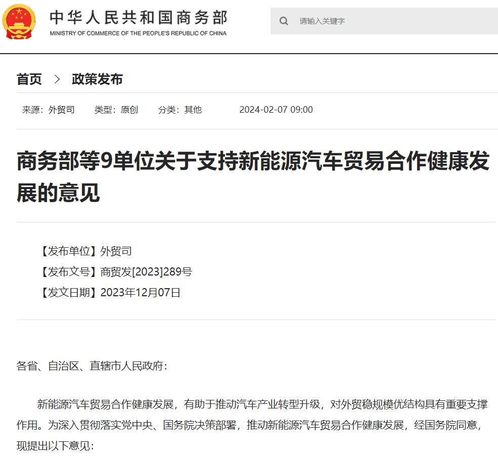 新能源汽车贸易合作健康发展,有助于推动汽车产业转型升级,对外贸稳规模优结构具有重要支撑作用。为深入贯彻落实党中央、国务院决策部署,推动新能源汽车贸易合作健康发展,经国务院同意,现提出以下意见: