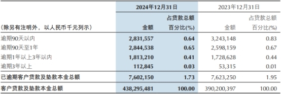 截至2024年12月31日,重庆银行逾期贷款总额为76.02亿元,较上年末下降0.21亿元;逾期贷款总额占客户贷款及垫款本金总额的比例为1.73%,较上年末下降0.22个百分点。重庆银行对逾期贷款采取审慎的分类标准,不良贷款与逾期90天以上贷款的比值为1.15。